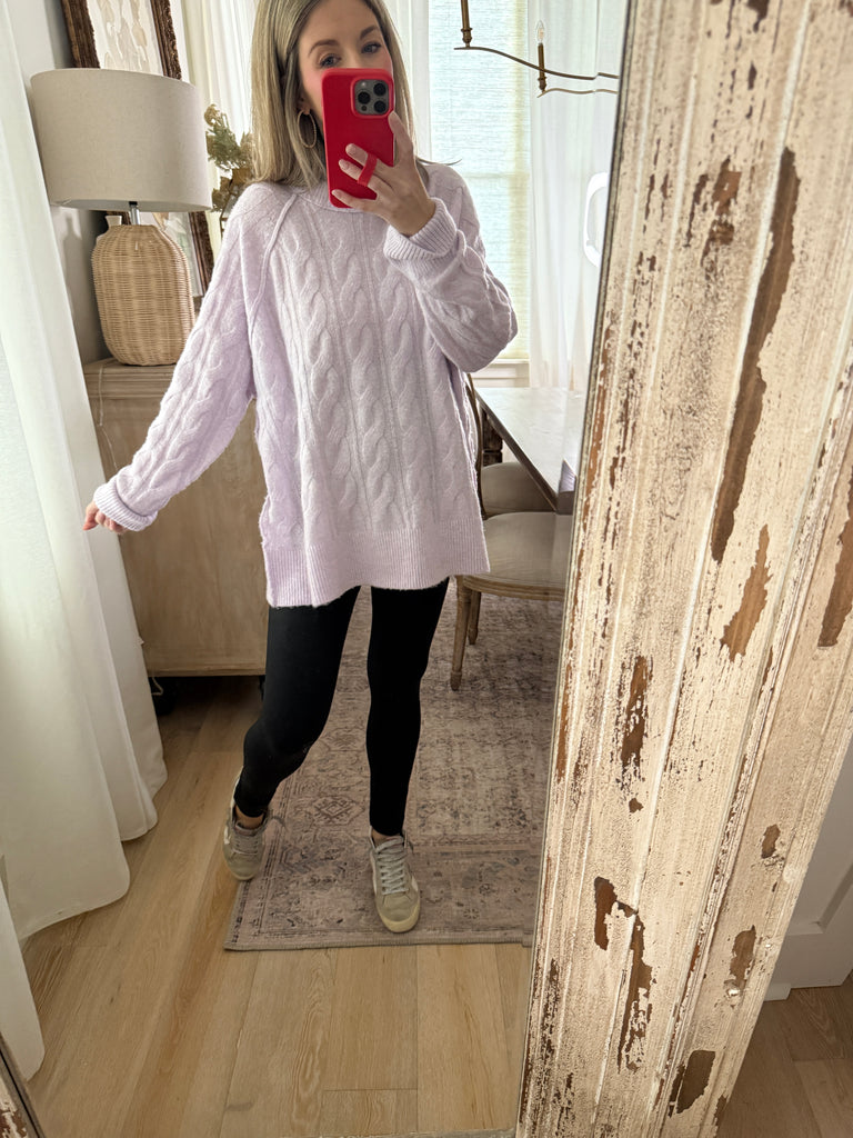 This cozy pullover sweater features a classic crew neck with a timeless cable knit pattern, offering a touch of traditional charm. Its relaxed fit ensures comfort, making it perfect for layering over collared shirts or under winter coats. A great choice for casual outings or cozy evenings indoors. Style it with denim jeans or tailored trousers for a put-together look.