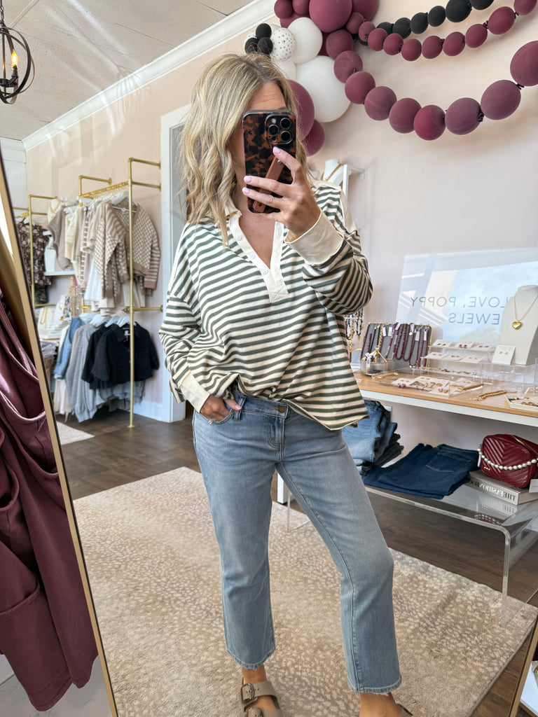 This casual striped top features a relaxed silhouette with a distinctive contrast collared neckline. Perfect for versatile layering, this piece pairs seamlessly with denim or casual trousers for an effortlessly stylish look that transitions from day to night. Ideal for those who value comfort without sacrificing style.