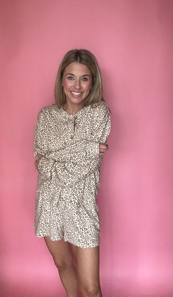 Leopard Print Shorts Set $44.99 Small - $44.99 Medium - $44.99 Large - $44.99 Quantity This variant is currently sold out coziest henley top and coordinating shorts set fabric content: 93% Polyester 7% Spandex Fit: Relaxed, elastic waist small 2-4 medium 8-10 large 12