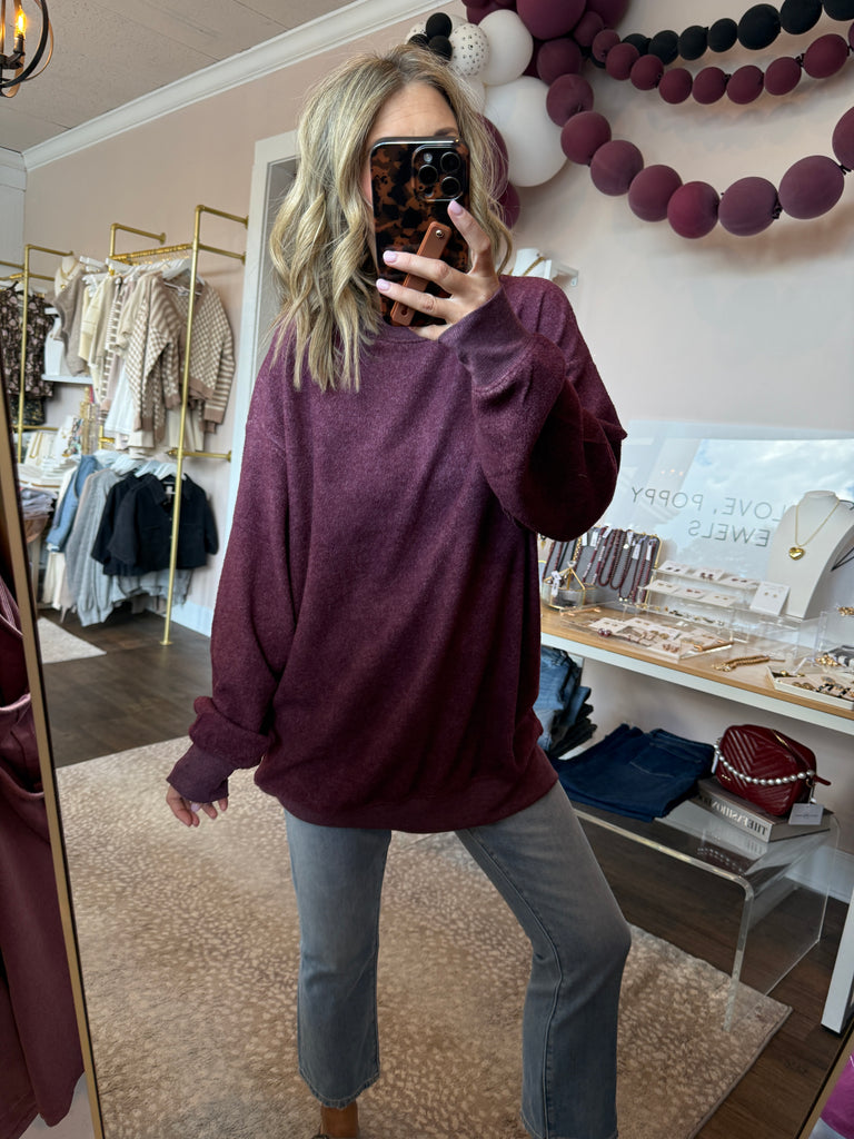 Embrace effortless style with this oversized fit sweatshirt, crafted from a brushed fabric that offers a soft, subtly textured surface. Its ribbed hem and cuffs add a touch of structure, making it ideal for a comfortable yet stylish look. Perfect for layering over tees or under jackets, this top pairs well with denim or leggings for a laid-back, fashionable ensemble.
