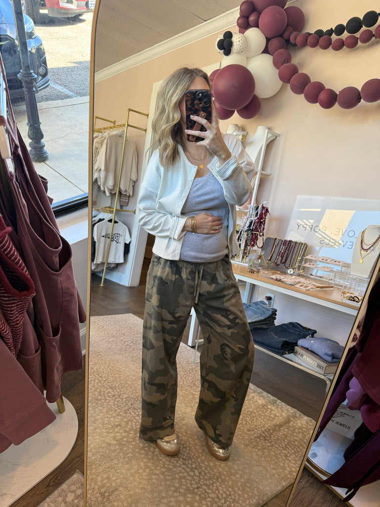 Ribbed mini stripe cardigan $47.99 small - $47.99 medium - $47.99 large - $47.99 Quantity This variant is currently sold out ivory with pale blue/grey mini stripe fabric: 93% cotton, 7% spandex fit: roomy fit, true to size small 2-6 medium 8-10 large 12