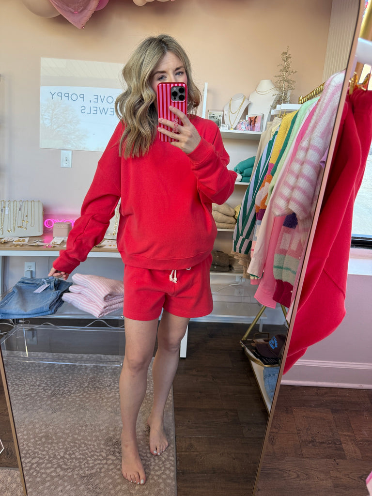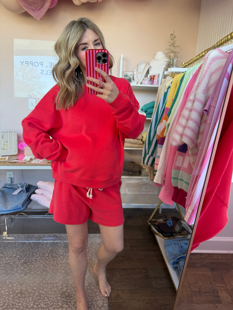 Papaya Soft Touch Shorts Set - 2pcs $77.99 small-do not separate - $77.99 medium-do not separate - $77.99 large-do not separate - $77.99 Quantity This variant is currently sold out Color: Papaya SOFT-TOUCH KNIT PULLOVER SOFT-TOUCH KNIT SHORTS- ELASTIC WAISTBAND WITH DRAWSTRING- SIDE POCKETS- SIDE SLITS 58% COTTON, 42% POLYESTER Fit: relaxed, roomy fit small 2-4, 6 if you'd like it fitted! medium 6-8 large 10