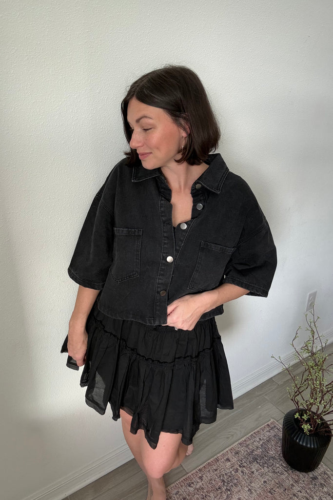 Elevate your wardrobe with our Button Front Cropped Shirt, the perfect blend of classic charm and contemporary flair. Featuring a tailored fit and button-down detailing, this versatile piece pairs effortlessly with high-waisted bottoms for a polished yet relaxed vibe. Lightweight and breathable, it's your ultimate staple for chic, everyday styling