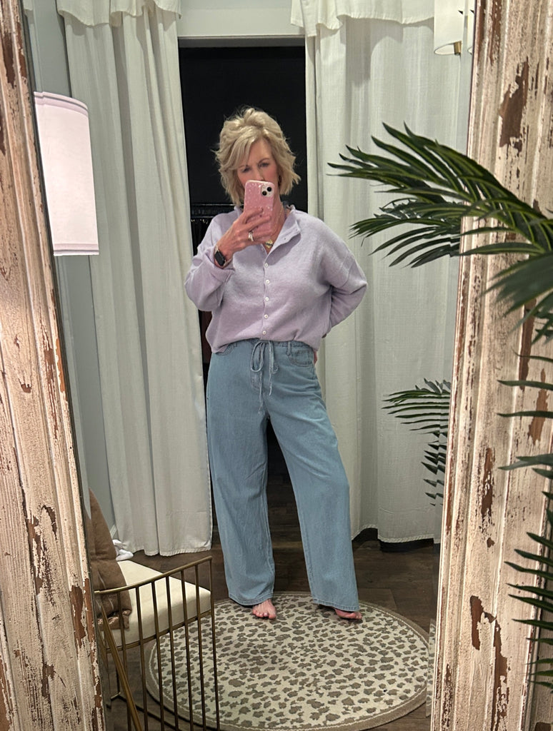 Soft and cozy lightweight cardigan with rolled edge finish on the sleeves and collar.